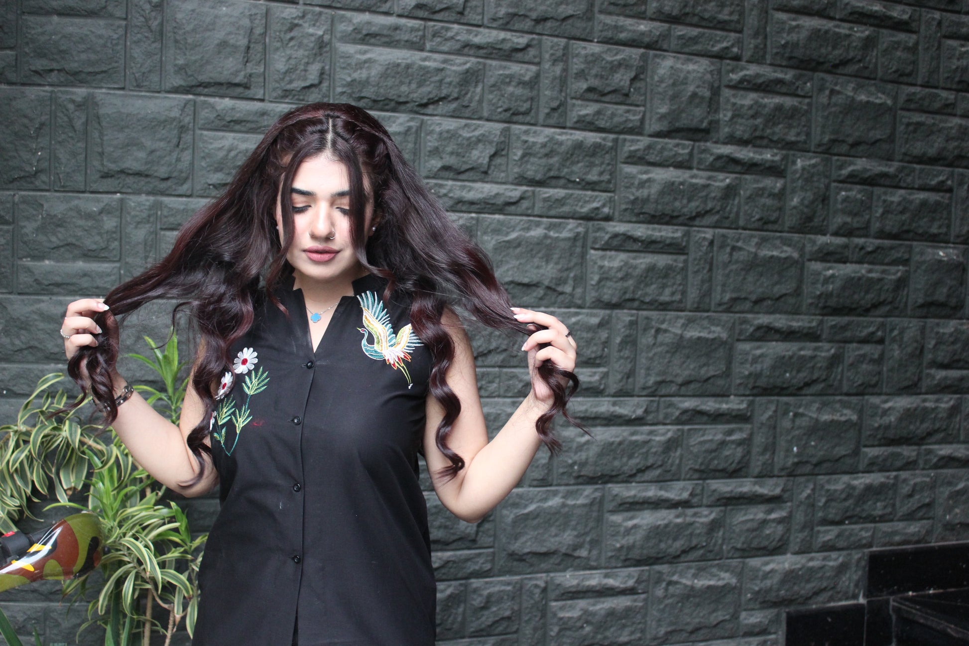 A bold and versatile black 2-piece outfit designed for effortless style. The straight open